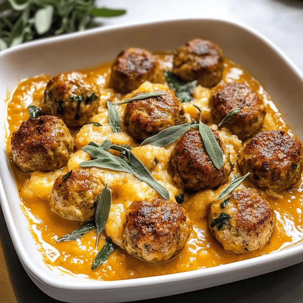 Jump to Recipe Print RecipeLe vent frais d’automne me rappelle pourquoi j’adore être en cuisine. C’est le moment idéal pour préparer des plats réconfortants, comme ces délicieuses boulettes de viande de dinde dans une sauce à la citrouille et à la sauge. Non seulement cette recette est simple et rapide à réaliser, mais elle est également un excellent moyen d’incorporer des ingrédients de saison, riches en saveurs et en nutriments. La combinaison de la viande de dinde tendre et de la sauce crémeuse à la citrouille éveillera vos papilles et apportera chaleur et réconfort à vos dîners. Prêt à découvrir comment cette recette va transformer votre repas d’automne en un véritable festin? Pourquoi essayer cette recette réconfortante ? Simplicité parfaite : Cette recette ne nécessite que des compétences de cuisine de base. Saveurs automnales : La combinaison de la citrouille et de la sauge évoque le goût de l’automne. Nutritif et savoureux : Chaque bouchée est à la fois délicieuse et saine. Polyvalence : Servez ces boulettes avec des gnocchis ou des pâtes pour un repas réconfortant. Double plaisir : Pour une variante, essayez d’utiliser du boeuf, qui peut aussi être délicieux ! Vous pouvez aussi jeter un œil à nos suggestions dans la section Idées de variations. Les boulettes de viande de dinde dans une sauce à la citrouille et à la sauge ne manqueront pas d’éveiller vos sens et de séduire vos invités. Boulettes de viande de dinde dans une sauce à la citrouille • Pour les boulettes de viande : Viande de dinde hachée – Fournit une source de protéine maigre. Vous pouvez substituer par du poulet haché ou du bœuf, mais notez que cela changera le profil de saveur. Chapelure fraîche – Ajoute de la structure et de l’humidité. Pour une alternative, utilisez de la chapelure Panko si besoin. Lait – Permet aux chapelures de s’imbiber pour plus de moelleux. Pour une option sans produits laitiers, optez pour du lait d’amande. Fromage parmesan – Rehausse la saveur de vos boulettes. Le fromage mozzarella râpé ou la levure nutritionnelle peuvent servir de substituts pour un choix sans produits laitiers. Oignon – Ajoute une douceur et un parfum agréable. Émincez-le finement pour qu’il s’incorpore facilement. Ail – Renforce le goût savoureux. Utilisez de l’ail frais et émincé pour les meilleurs résultats. Sauge fraîche – Apporte une note savoureuse distincte, idéale pour les plats d’automne. Herbes italiennes – Ajoute de la profondeur à la saveur. Des herbes séchées peuvent être une alternative. Œufs – Lient les ingrédients pour une bonne texture. Utilisez un œuf entier et un jaune d’œuf pour de meilleurs résultats. • Pour la sauce : Purée de citrouille en conserve – Crée une sauce veloutée. Vous pouvez utiliser simplement de la citrouille si désiré. Crème épaisse – Apporte de la crémeux à la sauce. Utilisez de la crème de coco pour une version sans produits laitiers. Ces boulettes de viande de dinde dans une sauce à la citrouille et à la sauge sont le plat réconfortant idéal que vous cherchiez ! Instructions étape par étape pour les Boulettes de viande de dinde dans une sauce à la citrouille Step 1 : Préparer les boulettes Dans un grand bol, mélangez des miettes de pain fraîches préalablement imbibées de lait, de la viande de dinde hachée, des oignons finement émincés, de l’ail fraîchement haché, de la sauge, des herbes italiennes, des œufs et du parmesan. Utilisez une fourchette pour combiner délicatement les ingrédients sans trop les travailler, jusqu’à obtenir une préparation homogène. Step 2 : Former les boulettes Prenez une petite portion de la préparation, environ de la taille d’une balle de golf, et formez des boulettes uniformes. Assurez-vous que chaque boulette est bien compacte pour éviter qu’elle ne se défasse à la cuisson. Disposez-les sur une assiette ou une plaque pour un accès facile lors de la cuisson. Step 3 : Cuire les boulettes Dans une poêle, chauffez un peu d’huile à feu moyen. Ajoutez délicatement les boulettes de dinde dans la poêle. Faites-les cuire pendant environ 6 à 8 minutes, en les retournant régulièrement, jusqu’à ce qu’elles soient dorées sur toutes les faces. Cela créera une croûte savoureuse qui rehaussera la saveur des boulettes de viande de dinde. Step 4 : Préparer la sauce Dans une autre casserole, combinez la purée de citrouille, la crème épaisse, la sauge fraîche et l’ail émincé. Faites chauffer à feu moyen-doux en remuant régulièrement pendant environ 5 minutes, jusqu’à ce que la sauce soit chaude et crémeuse. La sauce doit avoir une texture veloutée, parfaite pour enrober les boulettes. Step 5 : Combiner et servir Une fois que les boulettes sont cuites, incorporez-les délicatement dans la sauce à la citrouille et à la sauge. Remuez doucement à feu doux pour bien enrober les boulettes de viande de dinde. Servez chaud sur un lit de gnocchis ou de pâtes, et savourez ce plat réconfortant qui apportera chaleur et satisfaction à votre repas automnal. Conseils d’experts pour les boulettes de viande Mélange délicat : Utilisez une touche légère lorsque vous mélangez les ingrédients pour garder vos boulettes de viande de dinde tendres et moelleuses. Pré-cuisson parfaite : Pour une croûte savoureuse, préférez la cuisson à la poêle plutôt qu’au four pour obtenir une texture dorée et croustillante. Évitez le trop : Ne surchargez pas la poêle de boulettes. Faites-les cuire par petites quantités pour assurer une cuisson uniforme et éviter qu’elles ne se collent. Gouttez avant de servir : Avant de servir, goûtez la sauce à la citrouille et à la sauge et ajustez les assaisonnements, car un peu de sel ou de poivre peut rehausser les saveurs. Variations savoureuses : N’hésitez pas à expérimenter avec d’autres herbes telles que le thym ou le romarin p