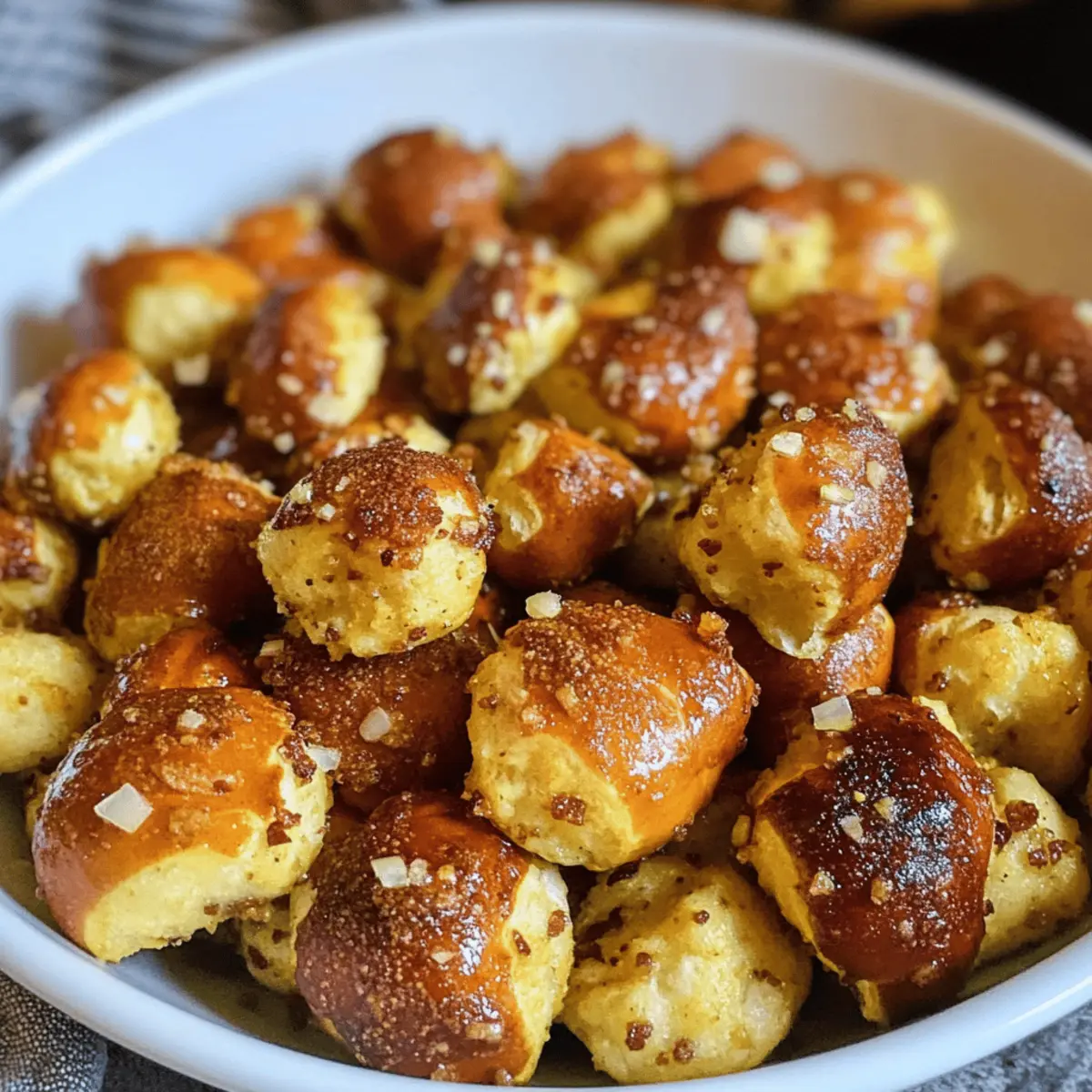 Jump to Recipe Print RecipeDans un coin de ma cuisine, une délicieuse odeur se propage alors que je prépare des Bretzels au miel, moutarde et oignon. En un rien de temps, je me retrouve avec ces bouchées croustillantes qui allient la douceur du miel, le piquant de la moutarde et l’arôme chaleureux de l’oignon. Ces petites merveilles sont idéales pour apaiser les envies de grignotage ou pour séduire vos invités lors de vos soirées. Pas seulement simples à réaliser, elles apportent une touche maison irrésistible que vous ne trouverez jamais dans les versions industrielles. Prêt à découvrir comment ces bouchées savoureuses peuvent transformer vos pauses snack en un véritable festin? Pourquoi ces bretzels sont-ils irrésistibles? Goût incroyable : La combinaison de miel, moutarde et oignon offre une explosion de saveurs qui ravira vos papilles. Facilité : Cette recette demande peu de compétences en cuisine, idéale pour les débutants. Idéale pour les soirées : Servez ces bretzels comme apéritif, et regardez vos invités revenir pour un second ou même un troisième tour! Personnalisable : Ajoutez vos épices préférées, comme l’ail ou le paprika fumé, pour une touche personnelle! Ne perdez pas de temps avec des collations industrielles, essayez ces bretzels au miel, moutarde et oignon faits maison dès maintenant! Ingrédients des Bretzels au miel, moutarde et oignon Découvrez la simplicité et la richesse des saveurs de ces bretzels faits maison! Pour les bretzels • Bretzels durs au levain – Donnent la structure et le croquant parfait; optez pour des bretzels de grande taille pour un meilleur résultat. • Huile végétale – Apporte de la richesse à vos bretzels; remplacez-la par de l’huile d’olive pour un goût encore plus savoureux. Pour le mélange au miel • Miel – Offre une douceur délicate et une texture collante; vous pouvez utiliser du sirop d’érable comme alternative vegan. • Moutarde jaune – Confère le goût piquant si caractéristique; n’hésitez pas à essayer de la moutarde de Dijon pour une saveur plus relevée. • Poudre d’oignon – Introduit une note d’oignon savoureux; utilisez des oignons frais hachés, mais ajustez l’humidité en conséquence. Avec cette liste d’ingrédients, vos bretzels au miel, moutarde et oignon seront aussi délicieux que faciles à préparer! Instructions pour les Bretzels au miel, moutarde et oignon Step 1 : Préchauffage du four Préchauffez votre four à 135 °C (275 °F). Pendant que le four chauffe, recouvrez une plaque de cuisson de papier sulfurisé pour éviter que les bretzels ne collent. Cette étape est cruciale pour assurer une cuisson uniforme des bretzels au miel, moutarde et oignon, et pour les rendre bien croustillants. Step 2 : Préparation du mélange au miel Dans un grand bol, versez l’huile végétale, le miel, la moutarde jaune et la poudre d’oignon. Fouettez le tout jusqu’à obtenir un mélange lisse et homogène. La consistance doit être fluide pour bien enrober vos bretzels. Cette préparation aromatique est la clé pour infuser une saveur délicieuse dans vos bretzels au miel, moutarde et oignon. Step 3 : Préparation des bretzels Cassez délicatement les bretzels durs au levain en morceaux de taille bouchée, en veillant à ce qu’ils soient tous à peu près de la même taille. Cela permettra une cuisson uniforme et agréable. Veillez à ce que les morceaux soient bien irréguliers pour maximiser la surface à enrober avec votre mélange savoureux. Step 4 : Enrobage des bretzels Ajoutez les morceaux de bretzels au mélange au miel et mélangez délicatement à l’aide d’une spatule. Assurez-vous que chaque morceau est bien couvert par le mélange, ce qui garantira que chaque bouchée de bretzels au miel, moutarde et oignon ait une saveur intense et délicieuse. Step 5 : Disposition sur la plaque Étalez le mélange de bretzels sur la plaque de cuisson en une seule couche. Cela permettra une circulation parfaite de l’air chaud, favorisant un croustillant idéal. Veillez à ne pas trop entasser les morceaux pour obtenir une belle coloration dorée sur chaque bretzel durant la cuisson. Step 6 : Cuisson des bretzels Enfournez la plaque et laissez cuire pendant environ 30 minutes. Remuez et retournez les bretzels à mi-cuisson, soit après 15 minutes, pour une cuisson uniforme. Les bretzels au miel, moutarde et oignon doivent devenir dorés et croustillants à l’extérieur tout en restant savoureux à l’intérieur. Step 7 : Refroidissement et conservation À la sortie du four, laissez les bretzels refroidir complètement sur la plaque. Cela leur permettra de devenir encore plus croustillants une fois refroidis. Une fois refroidis, transférez-les dans un récipient hermétique pour les conserver. Ils peuvent se conserver jusqu’à deux semaines, mais je parie qu’ils ne resteront pas aussi longtemps! Variations des Bretzels au miel, moutarde et oignon Sentez-vous libre d’expérimenter avec ces bretzels pour les adapter à vos goûts! Vegan : Remplacez le miel par du sirop d’érable pour une variante sans produits d’origine animale. La douceur du sirop d’érable apporte une belle profondeur de saveur tout en restant totalement savoureux. Épicé : Ajoutez une pincée de piment de Cayenne ou de flocons de piment à votre mélange. Cela ajoutera une chaleur réconfortante qui ravira les amateurs de sensations fortes! Ail : Incorporez de la poudre d’ail au mélange pour un goût plus riche. L’ail compresse le bon goût et rehausse tout le profil de saveurs, faisant de chaque bouchée une véritable explosion. Herbes fraîches : Ajoutez des herbes hachées comme le romarin ou le thym à la pâte pour un arôme plus herbacé. Ces herbes apporteront une touche d’élégance à ces bretzels simples. Moutarde à l’ancienne : Utilisez de la moutarde à grains entiers au lieu de la moutarde jaune pour une texture intéressante et un goû