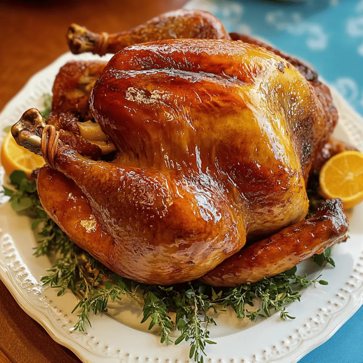 Jump to Recipe Print RecipeEn servant un bon repas, le vrai bonheur se trouve dans l’art de la préparation. Avec ma Dinde rôtie au romarin et à l’érable, vous célébrerez vos convives avec une recette qui mêle tradition et innovation. En utilisant une technique de saumurage astucieuse, cette dinde juteuse est enrobée d’un glaçage sucré à base de sirop d’érable, et le parfum du romarin, des oranges et des pommes en fait un véritable régal pour les sens. Facile à réaliser et impressionnante à la fois, cette recette apportera un air festif à votre table de Thanksgiving. Qui sait, elle pourrait même devenir votre nouvelle tradition de saison ! Êtes-vous prêt à essayer ce plat réconfortant et savoureux ? Pourquoi cette dinde rôtie vous séduira-t-elle ? Un goût inégalé : La combinaison du sirop d’érable et du romarin offre une explosion de saveurs qui ravira vos invités. Technique de saumurage : Grâce à cette méthode, la dinde reste tendre et juteuse, ce qui est essentiel pour un repas mémorable. Facilité d’exécution : Même si vous n’êtes pas un chef, cette recette est accessible et rapide à réaliser, parfait pour ceux qui souhaitent éviter la restauration rapide. Ambiance festive : Avec ses arômes d’oranges et de pommes, votre cuisine sera embaumée de senteurs de fête, créant une atmosphère chaleureuse. Accompagnement idéal : Cette dinde se marie merveilleusement bien avec des classiques comme la purée de pommes de terre ou des haricots verts, à découvrir dans notre recette de Pates Poulet Cremeuses ou nos Boulettes Poulet Yakitori, assurant un menu complet pour vos invités. Ingrédients de la Dinde Rôtie au Romarin et à l’Érable • Découvrez les ingrédients essentiels pour réaliser cette dinde savoureuse qui ravira vos fêtes. Pour la Saumure Sirop d’érable pur – Apporte douceur et profondeur à la saumure et au glaçage, choisissez toujours le 100% pur pour un goût optimal. Sel casher – Essentiel à la saumure ; il rehausse la saveur de la dinde. Vous pouvez le remplacer par du sel de mer, en ajustant la quantité selon son intensité. Grains de poivre tricolores – Offrent un goût poivré ; remplacez-les par du poivre noir si nécessaire. Feuilles de laurier – Infusent la saumure d’une note aromatique. Gousses d’ail (émincées) – Ajoutent de la profondeur savoureuse ; utilisez de l’ail frais pour plus d’intensité. Romarin frais – Apporte une note herbacée parfumée ; vous pouvez le remplacer par du thym si vous le souhaitez. Oranges (pelées) – Contribuent à l’éclat agrumé ; remplacez par des zestes de citron pour un profil de saveur différent. Pommes (rouges et vertes) – Ajoutent douceur et acidité à la saumure ; n’importe quelle pomme ferme fonctionne. Dinde (12 à 14 livres) – Protéine principale ; assurez-vous qu’elle soit bien décongelée avant la saumure. Pour le Glaçage Beurre salé (fondu) – Utilisé pour un glaçage riche ; du beurre non salé peut également faire l’affaire. Sirop d’érable supplémentaire – Renforce le glaçage collant avant la rôtisserie. Instructions Étape par Étape pour la Dinde Rôtie au Romarin et à l’Érable Step 1: Préparer la saumure Dans une grande casserole, combinez 3 tasses de sirop d’érable pur, le sel casher, les grains de poivre tricolores, les feuilles de laurier, l’ail émincé, le romarin frais, les pelures d’orange et les pelures de pomme avec suffisamment d’eau pour submerger la dinde. Portez le mélange à ébullition, puis laissez mijoter pendant environ 5 minutes jusqu’à ce que le sel soit dissous et que les arômes se mélangent. Step 2: Refroidir et saumurer la dinde Retirez la casserole du feu et laissez la saumure refroidir complètement à température ambiante. Une fois refroidie, plongez la dinde soigneusement décongelée dans la saumure, en veillant à ce qu’elle soit complètement immergée. Réfrigérez pendant au moins 12 heures, idéalement jusqu’à 5 jours pour des saveurs approfondies et une viande juteuse. Step 3: Rôtir la dinde Préchauffez votre four à 180 °C (350 °F). Après le temps de saumure recommandé, retirez la dinde de la saumure, rincez-la sous l’eau froide, puis séchez-la avec des serviettes en papier. Dans un petit bol, mélangez le beurre fondu avec un peu de sirop d’érable supplémentaire, que vous badigeonnez généreusement sur toute la surface de la dinde. Step 4: Cuisson de la dinde Placez la dinde dans une rôtissoire et enfournez-la. Faites cuire la dinde pendant environ 13 à 15 minutes par livre. N’oubliez pas de la arroser toutes les 30 minutes avec son jus pour obtenir un glaçage doré et brillant. La peau doit être croustillante et dorée à l’extérieur, tandis que l’intérieur doit être tendre et juteux. Step 5: Repos et service Une fois que la dinde a atteint une température interne de 75 °C (165 °F) au niveau de la partie la plus épaisse, retirez-la du four. Laissez reposer la dinde pendant au moins 20 à 30 minutes avant de la découper. Ce repos permet aux jus de se redistribuer, ce qui assure des tranches juteuses et savoureuses pour votre plat savoureux de dinde rôtie au romarin et à l’érable. Conseils d’Expert pour la Dinde Rôtie Dinde bien décongelée : Assurez-vous que votre dinde est complètement décongelée avant de commencer, cela garantit une cuisson uniforme et juteuse. Vérification de la température : Utilisez un thermomètre à viande pour vous assurer que votre dinde atteint 75 °C (165 °F) dans la partie la plus épaisse, pour la sécurité alimentaire. Ne pas trop arroser : Évitez de sur-arroser votre dinde pendant la cuisson, car cela peut brûler le glaçage. Une couche uniforme est la clé d’un résultat doré. Temps de saumure suffisant : Briner la dinde plus longtemps améliore la tendreté et la saveur globale. Pensez à saumurer jusqu’à 5 jours pour des résultats optimaux. Gl