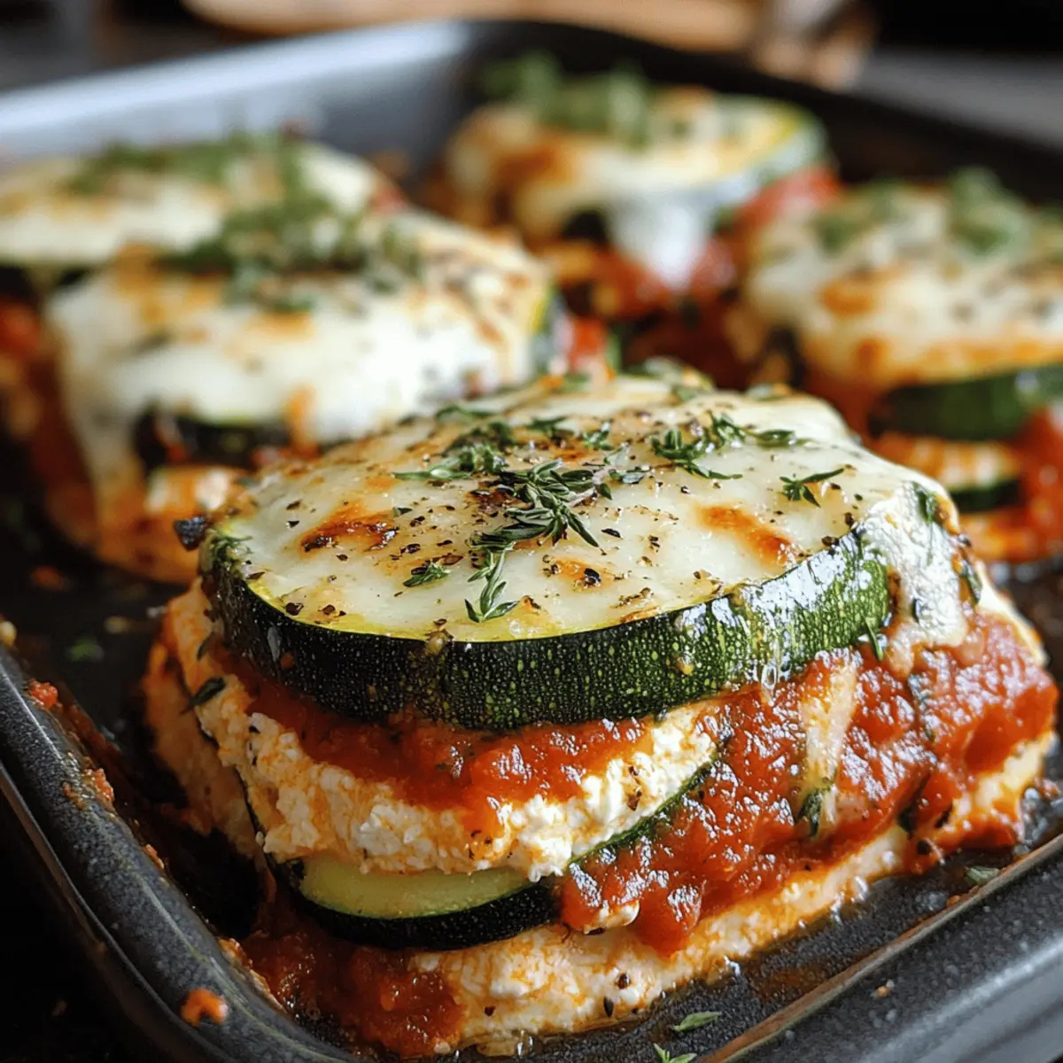 Jump to Recipe Print RecipeEn feuilletant les pages d’un livre de cuisine italienne, je suis tombé sur un incontournable : les fondants de courgettes à la ricotta avec marinara. Cette recette toute simple combine la tendresse des courgettes, la crémeux de la ricotta et la richesse de la sauce marinara, créant ainsi un plat léger et réconfortant. Non seulement elle se prépare en un rien de temps, mais elle séduira également vos convives par sa touche créative et savoureuse. Que ce soit pour un dîner rapide en semaine ou un déjeuner décontracté, cette association de textures et de saveurs est tout simplement irrésistible. Alors, avez-vous déjà décidé ce que vous seriez prêt à ajouter à votre table? Pourquoi aimer les fondants de courgettes ? Simplicité et rapidité : Cette recette ne nécessite que quelques ingrédients de base et peut être préparée en un clin d’œil, idéale pour les soirées chargées. Richesse en saveurs : La combinaison de la ricotta crémeuse et de la sauce marinara savoureuse crée une harmonie qui ravira vos papilles. Légèreté : Avec ses ingrédients frais et légers, ce plat est parfait pour ceux qui cherchent à réduire leur apport calorique sans sacrifier le goût. Polyvalence : Ajoutez des légumes de saison ou remplacez la ricotta par du fromage cottage pour varier les plaisirs. Une bonne idée est de le servir avec une simple salade verte pour un repas équilibré ! Appel visuel : La présentation en couches de courgettes colorées avec du fromage fondant est un vrai régal pour les yeux, parfait pour impressionner vos invités. Adaptabilité : Ce plat convient aussi bien aux végétariens qu’à ceux cherchant à augmenter leur apport en protéines, tout en restant faible en glucides ! Ingrédients pour les Fondants de Courgettes à la Ricotta avec Marinara • Découvrez les ingrédients essentiels qui rendront votre plat irrésistible ! Pour les fondants Courgettes – Elles servent de base fraîche et faible en calories ; n’oubliez pas de les assaisonner avant la cuisson. Fromage Ricotta – Apporte une texture crémeuse et est riche en protéines, parfaite pour lier les ingrédients. Sauce Marinara – Ajoute une explosion de saveurs avec sa richesse en tomates et herbes. Fromage Mozzarella – Fond et s’étire magnifiquement pour un effet gooey qui enrichit le plat. Origan Séché – Complète la saveur avec une touche aromatique délicate. Basilic Frais – Utilisé en garniture, il apporte fraîcheur et parfum. Huile d’Olive – Aide à rehausser le goût des courgettes en les dorant. Sel et Poivre – Indispensables pour rehausser toutes les saveurs. Flocons de Piment Rouge (Optionnel) – Pour ceux qui souhaitent un peu de chaleur dans leur plat. Ces ingrédients constituent la base parfaite pour vos fondants de courgettes à la ricotta avec marinara, un véritable délice à chaque bouchée ! Instructions étape par étape pour les Fondants de courgettes à la ricotta avec marinara Step 1 : Préchauffage du four Préchauffez votre four à 190°C (375°F) pour garantir une cuisson uniforme. Cela permettra aux saveurs de se mélanger et à vos fondants de courgettes à la ricotta avec marinara de cuire parfaitement. Pendant que le four chauffe, vous pourrez vous occuper des courgettes. Step 2 : Préparation des courgettes Coupez les courgettes dans le sens de la longueur en tranches d’environ 0,5 cm d’épaisseur. Badigeonnez chaque côté d’huile d’olive et assaisonnez-les bien avec du sel et du poivre. Cette étape est cruciale pour faire ressortir la saveur des courgettes tout en créant une légère dorure lors de la cuisson. Step 3 : Préparation du plat à gratin Graissez légèrement un plat allant au four de 20×20 cm avec un peu d’huile d’olive. Disposez la moitié des tranches de courgettes uniformément au fond du plat. Veillez à bien les répartir pour que chaque bouchée de vos fondants de courgettes à la ricotta soit savoureuse. Step 4 : Montage des couches Étalez la moitié du fromage ricotta sur les courgettes, suivi de la moitié de la sauce marinara et de la moitié du fromage mozzarella. Répétez ce processus avec le reste des courgettes, du fromage ricotta, de la marinara et de la mozzarella. Cette superposition apportera richesse et texture à votre plat. Step 5 : Ajout des herbes Saupoudrez l’origan séché sur le dessus des couches de fromage. Cela ajoutera une touche parfumée et délicate à vos fondants de courgettes à la ricotta avec marinara. Les herbes se marient parfaitement avec le fromage et la sauce pour un goût équilibré. Step 6 : Cuisson au four Enfournez le plat pour environ 20 à 25 minutes. Surveillez attentivement jusqu’à ce que les courgettes soient tendres et que le fromage bouillonne et soit légèrement doré. Vous saurez que votre plat est prêt lorsque les bords commencent à frémir et que le fromage gonfle de manière appétissante. Step 7 : Garniture avant de servir Après la cuisson, sortez le plat du four et laissez-le reposer quelques minutes. Juste avant de servir, garnissez vos fondants de courgettes à la ricotta avec du basilic frais. Cela ajoutera une touche de fraîcheur et de couleur à votre plat. Conseils d’expert pour les Fondants de Courgettes Coupes uniformes : Assurez-vous que vos tranches de courgettes sont d’épaisseur régulière pour garantir une cuisson homogène, évitant les morceaux trop cuits ou croquants. Repos nécessaire : Laissez reposer le plat quelques minutes après la cuisson. Cela permet aux saveurs de se mélanger et aux fondants de courgettes à la ricotta avec marinara de se raffermir légèrement pour une meilleure présentation. Maîtriser l’assaisonnement : Goûtez vos courgettes avant de les assembler. Un bon assaisonnement avec du sel et du poivre dès le début rehausse le goût de l’ensemble du plat. Variantes savoureuses : N’hésitez pas à ajouter des légumes de saison pour enrichir 