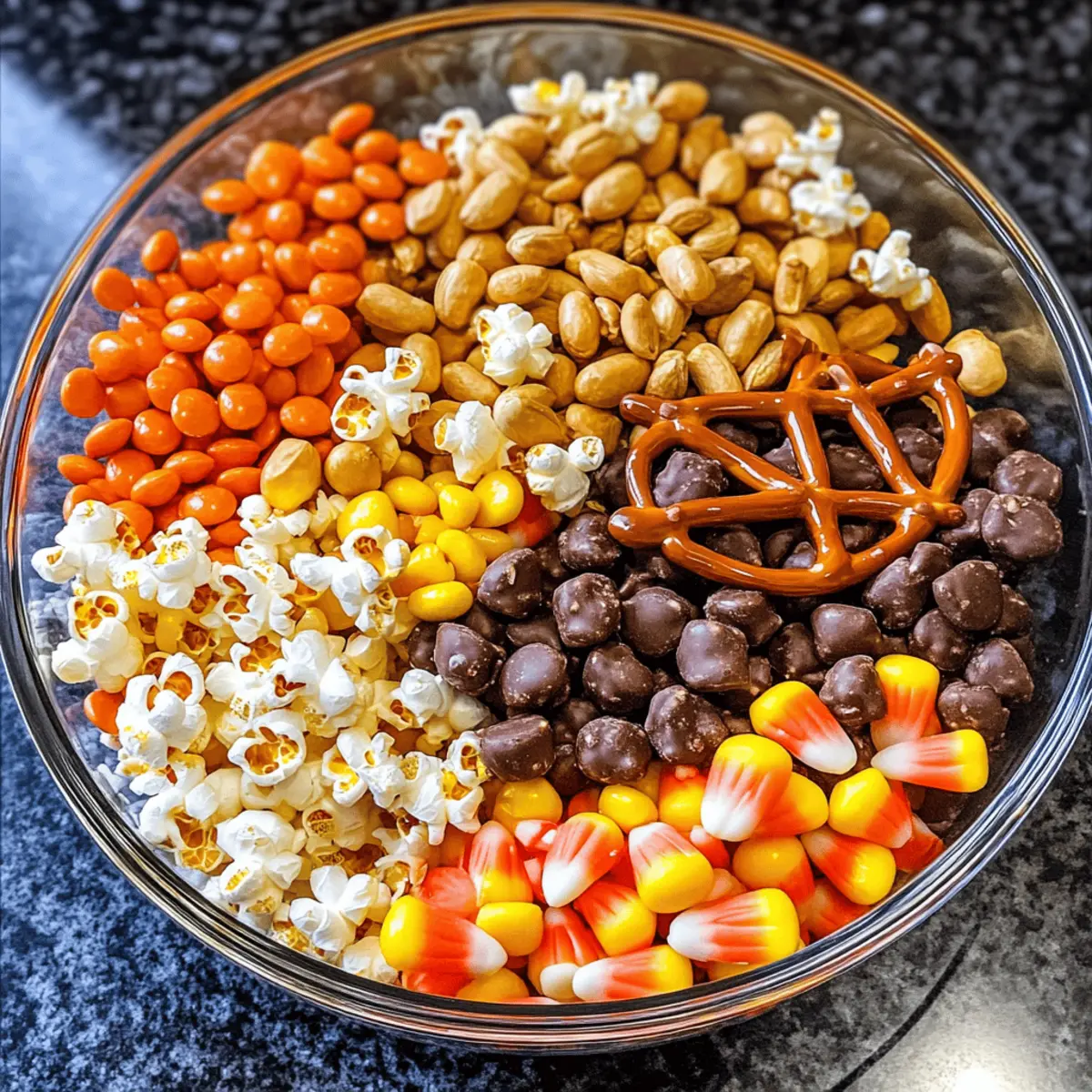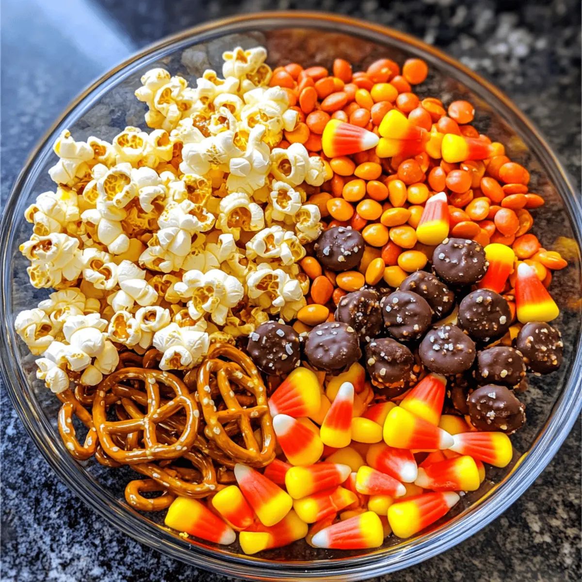 Jump to Recipe Print Recipe“En savourant l’air frais d’automne, je me suis rendu compte qu’il était temps de faire une pause bien méritée, loin des collations industrielles. C’est alors que j’ai concocté ce mélange de collations d’automne sucré-salé—une alliance parfaite de textures et de saveurs qui fera fondre votre cœur ! Avec des ingrédients simples comme du maïs soufflé caramel croustillant et des bretzels salés, cette recette sans cuisson se prépare en un clin d’œil, idéale pour vos soirées ou les fêtes de fin de saison. Vous allez adorer le fait qu’elle nécessite seulement six ingrédients et moins de cinq minutes de préparation, ce qui en fait un incontournable pour tous vos rassemblements. Alors, qu’attendez-vous pour vous lancer ? Découvrons ensemble comment réaliser cette douceur qui ravira vos papilles !” Pourquoi choisir ce mélange de collations ? Simplicité: Cette recette se prépare en moins de cinq minutes, idéale pour les personnes pressées qui veulent un goût authentique sans tracas. Saveurs équilibrées: L’union du maïs soufflé au caramel et des bretzels salés offre un mélange à la fois sucré et salé qui ravira vos papilles. Personnalisable: Adaptez les ingrédients selon vos envies! Ajoutez des noix ou des bonbons pour créer votre propre version unique. Parfait pour toutes occasions: Que ce soit pour une soirée cinéma, une fête d’Halloween ou un rassemblement familial, ce mélange de collations d’automne est toujours un succès. Économie de temps: Pas de cuisson nécessaire et une préparation rapide, c’est la solution idéale pour les moments impromptus! Convivial: Ce mélange anglais et réconfortant est parfait pour partager, rendant vos moments en famille ou entre amis encore plus spéciaux. Ingrédients du Mélange de collations d’automne • Pour le Mélange Maïs soufflé caramel – apporte douceur et croustillant; remplacez-le par du maïs soufflé au chocolat pour une variante gourmande. Bretzels miniatures – ajoutent un croquant salé; essayez les Bugles ou les chips tortilla pour un goût différent. Cacahuètes grillées salées – offrent des protéines et une touche de noix; vous pouvez les remplacer par des noix de pécan caramélisées pour plus de saveur. Mini tasses de beurre de cacahuète Reese’s – apportent une saveur crémeuse de chocolat et de beurre de cacahuète; substituez-les par des Rolo pour une touche encore plus chocolatée. Reese’s Pieces – ajoutent de la couleur et de la douceur; les M&M’s fonctionnent très bien en alternative. Bonbons Brach’s – ajoutent une touche festive et sucrée; optez pour des bonbons en forme de citrouille pour plus de saisonnalité. Le mélange de collations d’automne que vous allez préparer ne manquera pas de donner le sourire à tous vos invités! Étapes à suivre pour le Mélange de collations d’automne sucré et salé Step 1 : Mélanger les ingrédients Dans un grand bol de mélange, ajoutez les six ingrédients principaux du mélange de collations d’automne : le maïs soufflé caramel croustillant, les bretzels miniatures, les cacahuètes grillées salées, les mini tasses de beurre de cacahuète Reese’s, les Reese’s Pieces et les bonbons Brach’s. Cette étape simple demande moins de cinq minutes et vous permettra de créer une base savoureuse et colorée. Step 2 : Remuer délicatement Utilisez une spatule ou une grande cuillère en bois pour remuer délicatement les ingrédients mélangés. Assurez-vous que chaque bouchée du mélange de collations d’automne sucré et salé est bien enrobée et uniformément répartie. Mettez en avant la couleur vibrante et les textures variées, parfaites pour éveiller l’appétit de vos invités. Step 3 : Servir ou conserver Servez immédiatement votre mélange de collations d’automne dans un grand plat ou des contenants individuels pour un partage facile. Si vous prévoyez de l’utiliser plus tard, transférez-le dans un récipient hermétique. Conservez-le à température ambiante pour maintenir le croustillant et savourez ce délice jusqu’à deux semaines après sa préparation. Conseils de stockage pour le Mélange de collations d’automne Température ambiante: Conservez le mélange de collations d’automne dans un endroit frais et sec; il est meilleur dégusté frais, mais peut rester croustillant jusqu’à deux semaines. Réfrigérateur: Évitez de placer le mélange au réfrigérateur, car l’humidité peut rendre les ingrédients détrempés et moins croustillants. Congélateur: Il n’est pas recommandé de congeler ce mélange, car la texture pourrait être affectée à la décongélation. Préparez juste ce qu’il vous faut pour chaque occasion! Réchauffage: Pas besoin de réchauffer! Servez-le tel quel, et savourez ce mélange sucré-salé frais pour profiter de toutes ses saveurs. Que servir avec le Mélange de collations d’automne sucré et salé ? Laissez-vous inspirer par ces délicieuses suggestions qui compléteront à merveille ce mélange de collations d’automne et réchaufferont vos soirées. Chocolat chaud crémeux : Une boisson chaude à la texture onctueuse qui apportera un contraste agréable avec le croquant de votre mélange. Idéale pour une expérience cocooning en automne. Pommes au caramel : Ces douceurs sucrées et juteuses offrent une touche saisonnière qui s’accorde parfaitement avec les saveurs du mélange, pour une harmonie parfaite de goûts. Biscuits à la cannelle : Leur arôme réconfortant et leur texture moelleuse créent une belle complémentarité avec le croquant du mélange, ajoutant une note chaleureuse à votre dégustation. Salade de chou aux noix : Cette salade croquante et légèrement sucrée apporte une fraîcheur bienvenue, équilibrant les saveurs riches du mélange tout en ajoutant une texture surprenante. Punch aux fruits : Un mélange rafraîchissant de jus de fruits et de soda qui appor