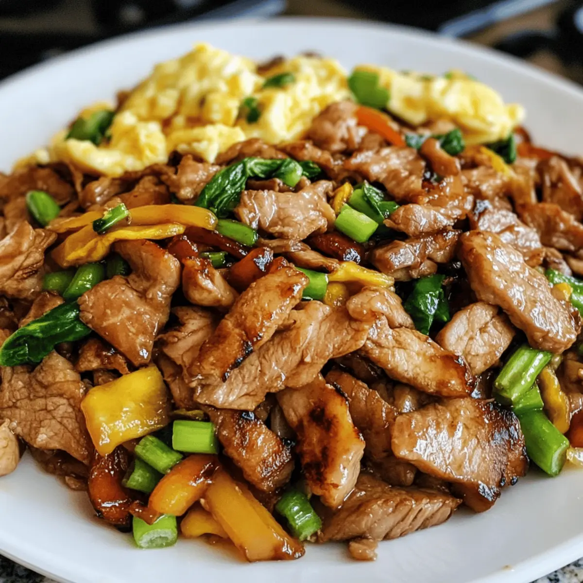 Jump to Recipe Print RecipeAu détour d’un marché asiatique, j’ai aperçu un plat coloré et appétissant qui a instantanément éveillé ma curiosité : le Moo Shu Pork. Ce délice chinois allie la tendresse du porc mariné à des légumes croquants, le tout enrobé d’une sauce savoureuse. La beauté de cette recette réside dans sa simplicité et sa capacité à ravir toute la famille. En un rien de temps, vous pouvez préparer ce plat réconfortant, le rendant idéal pour les soirs de semaine chargés. Que vous souhaitiez l’adapter à vos préférences alimentaires ou essayer une version végétale, le Moo Shu est suffisamment polyvalent pour répondre à toutes vos envies. Prêt à transformer votre dîner en un festin savoureux ? Pourquoi aimer le Moo Shu ? Simplicité culinaire : Cette recette de Moo Shu Pork demande peu d’ingrédients et peu de temps, idéale pour les soirs pressés. Saveurs équilibrées : Les arômes du porc mariné se mêlent délicieusement aux légumes croquants, créant une explosion de goût à chaque bouchée. Flexibilité totale : Embarquez dans cette aventure culinaire en personnalisant la recette avec des protéines alternatives comme le tofu ou le poulet. Parfait pour le partage : Que vous serviez ce plat avec des tortillas ou des pancakes chinois, il est parfait pour une expérience de repas interactive. Gagnez du temps : Préparez en avance pour réchauffer facilement, une option pratique pour les familles occupées. Ajoutez une touche spéciale en accompagnant ce plat d’une slaw asiatique pour un contraste de textures. Ingrédients du Moo Shu Pork Pour la Marinade Sauce hoisin – Ajoute une richesse et une douceur inégalées; vous pouvez la remplacer par une sauce soja sucrée maison si nécessaire. Vin de riz – Équilibre les saveurs; remplacez-le par du sherry sec ou du vinaigre de riz si besoin. Sauce soja faible en sodium – Donne de la salinité sans excès de sodium; utilisez de la sauce soja classique, mais cela augmentera la teneur en sodium. Vinaigre de riz – Apporte une acidité équilibrant la douceur; le vinaigre de cidre peut être une bonne alternative. Ail haché – Offre une saveur aromatique; utilisez de l’ail frais haché pour le meilleur goût, l’ail en poudre peut dépanner. Gingembre râpé – Apporte chaleur et épicé; vous pouvez le substituer par du gingembre en poudre. Fécules de maïs – Épaissit les marinades; peut être remplacée par de l’arrow-root ou de la fécule de tapioca. Huile de sésame – Donne une saveur et un arôme de noisette; n’importe quelle huile neutre peut remplacer de manière temporaire. Poivre noir moulu – Ajoute une chaleur légère et une saveur; le poivre blanc peut offrir un goût différent. Mirin (optionnel) – Ajoute un goût sucré et une profondeur; utilisez un mélange de sucre et d’eau comme substitut si vous le souhaitez. Pour le Plat Filet de porc – La protéine principale offrant tendreté et saveur; le poulet, le bœuf ou le tofu sont de bonnes alternatives selon vos besoins. Huile végétale – Pour la friture; d’autres huiles adaptées aux hautes températures peuvent également être utilisées. Œufs – Ajoutent de la richesse et améliorent la texture; pour une version végétalienne, utilisez du tofu brouillé ou de la farine de pois chiches. Mélange de coleslaw tricolore ou chou/carrotes râpés – Offre une texture croquante; toutes les variétés de chou fonctionneront. Champignons shiitake – Fournissent une saveur terreuse; vous pouvez utiliser des champignons de Paris ou d’autres champignons frais. Ciboules – Ajoutent une saveur d’oignon frais et doux; les ciboules peuvent être un substitut en cas de besoin. Cette recette de Moo Shu est l’idéale pour marier facilité et goût ! Instructions pour le Moo Shu Pork Step 1 : Préparation de la marinade Dans un grand bol, fouettez ensemble la sauce hoisin, le vin de riz, la sauce soja faible en sodium, le vinaigre de riz, l’ail haché, le gingembre râpé, la fécule de maïs, l’huile de sésame, le poivre noir et le mirin si vous l’utilisez. Cela doit créer une marinade lisse et parfumée. Réservez ½ tasse de cette marinade pour plus tard. Step 2 : Mariner le porc Ajoutez les lanières de filet de porc dans le bol contenant le reste de la marinade. Mélangez bien pour enrober le porc uniformément. Laissez mariner au réfrigérateur pendant au moins 30 minutes, une étape essentielle pour que les saveurs s’infusent dans la viande. Step 3 : Cuire les œufs Dans une poêle antiadhésive, chauffez 1 cuillère à soupe d’huile végétale à feu moyen. Ajoutez les œufs battus et remuez doucement jusqu’à ce qu’ils soient cuits mais encore moelleux, environ 2-3 minutes. Retirez-les de la poêle, coupez-les en morceaux et gardez-les au chaud. Step 4 : Cuire le porc Dans la même poêle, ajoutez 1 cuillère à soupe d’huile supplémentaire et augmentez le feu à moyen-vif. Retirez le porc de la marinade et faites-le sauter pendant 2-3 minutes, jusqu’à ce qu’il soit doré et cuit. Veillez à ne pas surcharger la poêle, pour une cuisson idéale. Step 5 : Faire sauter les légumes Ajoutez une autre cuillère à soupe d’huile dans la poêle, puis incorporez le mélange de coleslaw et les champignons shiitake. Faites sauter à feu moyen jusqu’à ce que les légumes soient tendres, environ 4-5 minutes. Ils doivent rester croquants pour apporter du contraste au Moo Shu Pork. Step 6 : Combiner les ingrédients Réintroduisez le porc et les morceaux d’œufs dans la poêle. Ajoutez la marinade réservée et mélangez pour enrober tous les ingrédients. Faites chauffer à feu doux pendant 2-3 minutes, jusqu’à ce que tout soit bien chaud et que les saveurs soient harmonisées. Step 7 : Servir Pour le service, garnissez le Moo Shu Pork avec les ciboules restantes. Proposez-le avec des tortillas de blé, des pancakes chinois ou du riz vapeur, permettant à c