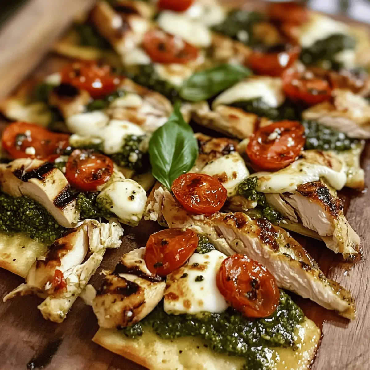 Jump to Recipe Print RecipeAlors que je feuilletai les pages d’un vieux livre de cuisine italienne, une odeur réconfortante de basilic frais et de poulet grillé m’a transporté dans les rues ensoleillées de Naples. C’est ainsi que l’idée de mon Pain plat au poulet pesto est née : une recette rapide et facile qui combine le meilleur de l’Italie tout en étant parfaite pour le quotidien. Avec sa base de flatbread croustillante, son poulet juteux et sa délicieuse sauce pesto, ce plat est non seulement un régal pour les papilles, mais aussi un vrai sauve-temps pour les dîners en semaine ! Imaginez une délicieuse option qui ravira vos convives sans vous donner trop de tracas. Alors, prêt à l’essayer et à épater votre famille ? Pourquoi essayer cette recette aujourd’hui ? Simplicité: Préparer ce Pain plat au poulet pesto est un véritable jeu d’enfant ! Vous n’avez besoin que de quelques ingrédients pour créer un plat exceptionnel. Goût Savoureux: L’association du poulet juteux et du pesto frais crée une explosion de saveurs italiennes à chaque bouchée. Personnalisable: Ajoutez vos garnitures préférées pour une touche unique. Que diriez-vous d’incorporer des légumes grillés ou d’autres fromages ? Rapidité: Parfait pour les soirs chargés, ce plat se prépare en moins de 30 minutes, vous permettant ainsi de savourer un dîner délicieux sans le stress. Attrait général: Que ce soit pour un repas de famille ou un rassemblement entre amis, ce Pain plat sera certainement le point fort de votre table ! Ingrédients pour le Pain plat au poulet pesto Pour le Poulet • Poitrines de poulet – Choisissez des poitrines juteuses pour une meilleure texture. • Huile d’olive – Préférez l’huile d’olive extra vierge pour un goût plus riche. • Sel et poivre – Assaisonnez généreusement pour faire ressortir toutes les saveurs. Pour le Pesto • Pesto de basilic – Utilisez un pesto frais pour une saveur authentique. • Parmesan – Ajoutez du fromage pour une texture umami et croustillante. • Basilic frais – Pour la garniture, il apporte une touche de couleur et de fraîcheur. Pour le Flatbread • Pain plat – Optez pour un pain plat croustillant comme base, ou faites-le maison avec de la farine et de l’eau. Pour les Garnitures • Mozzarella – Choisissez une mozzarella fondante pour une texture délicieuse. • Tomates cerises – Elles ajoutent fraîcheur et douceur au plat. Substitution Note: Essayez de les remplacer par des poivrons rôtis pour varier les saveurs. Ce Pain plat au poulet pesto est la combinaison parfaite d’ingrédients simples, offrant un repas savoureux et rapide à préparer ! Instructions pour le Pain plat au poulet pesto Step 1: Préchauffage du four Préchauffez votre four à 200°C (400°F). Cela permettra à votre Pain plat au poulet pesto de cuire uniformément et d’obtenir une croûte croustillante. Pendant que le four chauffe, préparez tous vos ingrédients pour que le processus de cuisson soit fluide. Step 2: Préparation du poulet Tapotez les poitrines de poulet avec du papier absorbant pour les sécher. Ensuite, assaisonnez-les généreusement avec du sel et du poivre, ainsi qu’un peu de poudre d’ail ou d’assaisonnement italien si vous le souhaitez. Ces saveurs rehausseront le goût de votre plat tout au long de la préparation. Step 3: Cuisson du poulet Faites chauffer de l’huile d’olive dans une grande poêle à feu moyen-vif. Ajoutez les poitrines de poulet et faites-les cuire pendant environ 6-7 minutes de chaque côté, jusqu’à ce qu’elles soient dorées et que leur température interne atteigne 75°C (165°F). Cela garantit que le poulet reste juteux et savoureux pour votre Pain plat au poulet pesto. Step 4: Tranchage du poulet Une fois le poulet cuit, retirez-le de la poêle et laissez-le reposer pendant 5 minutes pour que les jus se redistribuent. Ensuite, trancher les poitrines en lanières fines. Cela permettra une répartition équilibrée sur votre flatbread, assurant que chaque bouchée soit riche en saveurs. Step 5: Préparation du flatbread Prenez vos pains plats et disposez-les sur une plaque de cuisson. Étalez généreusement le pesto de basilic sur chaque pain plat, en veillant à couvrir uniformément la surface. Cette base aromatique contribuera à l’explosion de saveurs du Pain plat au poulet pesto. Step 6: Ajout du poulet et des garnitures Répartissez les lanières de poulet cuit sur le pesto, puis ajoutez la mozzarella et les tomates cerises coupées en deux. Ces garnitures non seulement ajoutent une belle couleur à votre plat, mais elles apportent aussi une texture et une saveur délicieuse qui se marie à merveille avec le poulet. Step 7: Ajout du fromage Saupoudrez généreusement de parmesan sur le dessus des flatbreads. Cela créera une croûte savoureuse et croustillante lorsqu’ils seront cuits au four. N’hésitez pas à ajuster la quantité de fromage selon vos préférences pour un Pain plat au poulet pesto encore plus gourmand. Step 8: Cuisson au four Enfournez les flatbreads pendant 10-12 minutes, jusqu’à ce que le fromage soit fondu et que les bords du pain soient dorés et croustillants. Gardez un œil sur eux pendant les dernières minutes pour éviter de les brûler, car chaque four a ses particularités. Step 9: Option de gratinage Si vous souhaitez un extra croustillant, vous pouvez passer vos Pain plat au poulet pesto sous le gril pendant 1-2 minutes. Surveillez de près ce processus, car cela peut rapidement passer de doré à brûlé. Cela donnera une belle texture à votre plat réussi. Step 10: Présentation et garniture Laissez refroidir les Pain plat au poulet pesto quelques minutes avant de les trancher. Garnir de feuilles de basilic frais pour une touche d’herbes fraîches et une belle présentation. Servez chaud et savourez ce plat savoureux qui ravira vos invités ! Variations du Pain plat au poulet pesto Personnal
