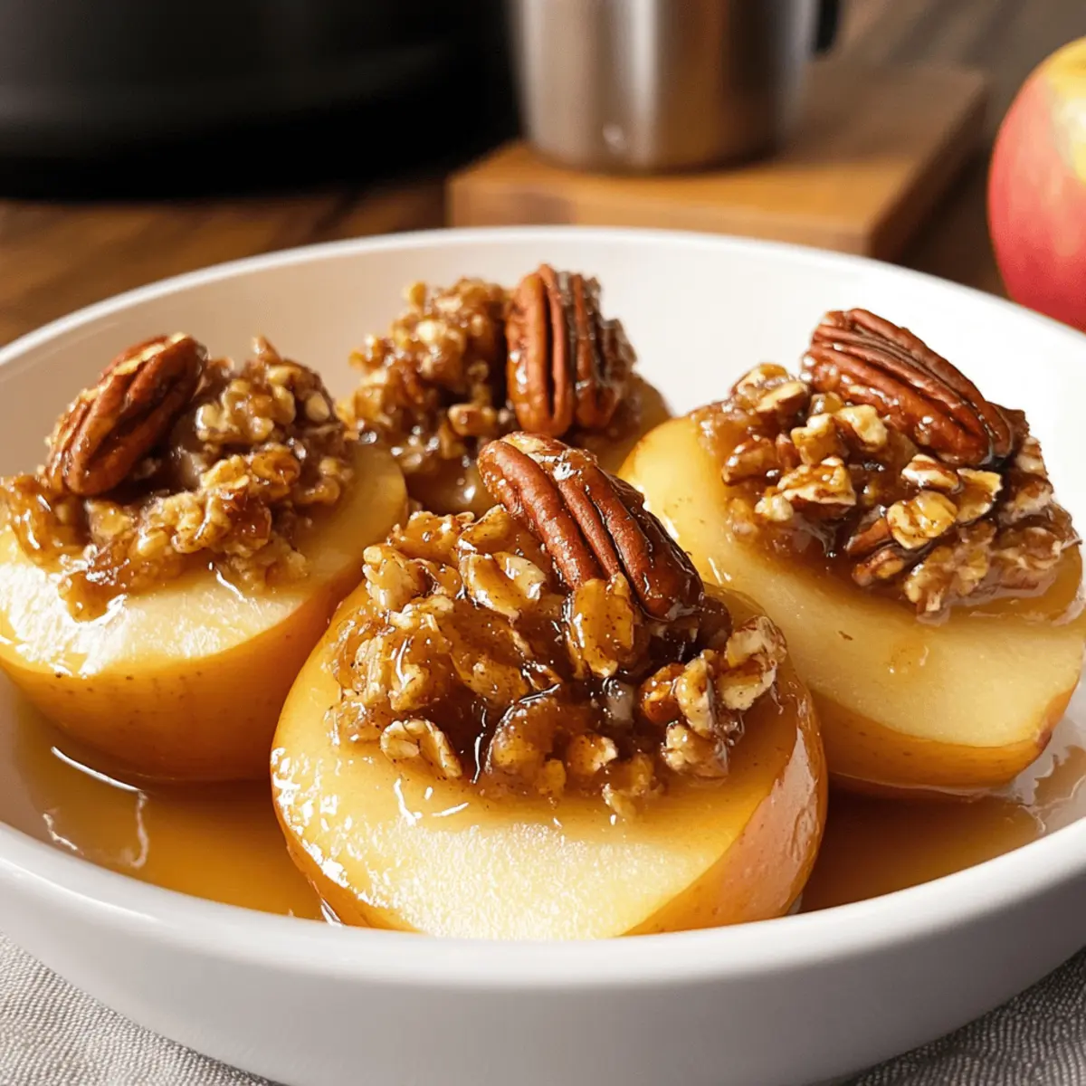 Jump to Recipe Print RecipeAlors que l’automne s’installe, je me retrouve souvent à imaginer le doux parfum des desserts réconfortants qui remplissent ma cuisine. Aujourd’hui, je vous invite à découvrir ma recette de Pommes cuites au Crock-Pot, un délice qui marie la tendresse des pommes caramélisées avec un croustillant irrésistible de pacanes et d’avoine. Ce dessert est non seulement facile à préparer, mais il est aussi sans gluten, parfait pour les familles pressées désireuses de savourer une douce gourmandise. En un rien de temps, vous pourrez plonger votre cuillère dans ce dessert chaleureux et réconfortant, qui évoque les soirées d’automne passé en famille. Quelles surprises cachées ces pommes vont-elles vous révéler ? Pourquoi choisir les pommes cuites au Crock-Pot ? Simplicité d’exécution : La préparation est rapide, sans tracas, et demande juste quelques gestes. Saveurs réconfortantes : Les pommes se mélangent avec la cannelle et le caramel pour un goût irrésistible. Variété des textures : Le contraste entre la tendreté des pommes et le croustillant de la garniture ajoute au plaisir de déguster. Idéal pour la famille : Ce dessert plaira à tous, petits et grands, rendant vos soirées plus chaleureuses. Récupération facile : Préparez-le à l’avance, ils se conservent parfaitement au réfrigérateur pour un dessert prêt à servir. Si vous cherchez d’autres idées pour l’automne, explorez aussi nos recettes de desserts réconfortants. Ingrédients pour les pommes cuites au Crock-Pot • Préparez-vous à savourer ce dessert aux pommes irrésistible et réconfortant ! Pour le Topping Beurre – 6 c. à soupe, ramolli. Ajoute de la richesse et aide à lier la garniture. Substitution : huile de coco pour une version sans produits laitiers. Pacanes hachées – 1/4 tasse. Apporte du croquant et une saveur de noisette. Substitution : les noix ou les amandes peuvent être utilisées. Avoine à l’ancienne – 1/4 tasse. Ajoute de la texture et des fibres. Substitution : utilisez de l’avoine sans gluten pour une variante sans gluten. Sucre brun – 1/4 tasse. Sucre la garniture et le remplissage. Substitution : sirop d’érable ou sucre de coco pour une option moins raffinée. Cannelle moulue – 1 c. à café. Renforce la chaleur et la saveur. Gingembre moulu – 1/4 c. à café. Ajoute une note d’épice subtile. Sel casher – Une pincée. Équilibre la douceur. Pour les Pommes Pommes – 4 grandes, émondées et tranchées. L’ingrédient principal qui devient tendre. Note : Utilisez des variétés acidulées comme les Granny Smith pour contraster avec la douceur. Pour le Service Crème glacée – Pour servir. Optionnel, ajoute de la crémeux. Caramel, réchauffé – Pour arroser avant de servir. Ajoute une touche gourmande. Ces ingrédients se combinent pour créer un dessert dont vous ne pourrez plus vous passer ! Instructions pour les Pommes cuites au Crock-Pot Step 1: Préparer le Topping Dans un bol, mélangez le beurre ramolli, les pacanes hachées, l’avoine, le sucre brun, la cannelle, le gingembre et une pincée de sel. Avec vos doigts ou une fourchette, travaillez le mélange jusqu’à obtenir une texture granuleuse et légèrement humide. Cela prendra environ 5 minutes. Réservez le topping, il servira à apporter une belle couche croquante à vos pommes cuites au Crock-Pot. Step 2: Préparer les Pommes Épluchez les pommes et retirez le cœur, puis tranchez-les en quartiers uniformes d’environ 1 cm d’épaisseur. Ces morceaux doivent être tendres à la cuisson, mais suffisamment fermes pour ne pas se désagréger. Préchauffez votre Crock-Pot à faible intensité pendant que vous les préparez, afin qu’il soit prêt à accueillir les pommes dès que vous aurez terminé. Step 3: Disposer les Pommes Disposez les quartiers de pommes en couches dans le Crock-Pot, en les entassant bien. Assurez-vous que les morceaux sont répartis uniformément au fond de l’appareil. Cela garantira une cuisson homogène et une belle caramélisation. Une fois terminé, vous serez ravi de voir la couleur vivante de ces pommes prêtes à cuire. Step 4: Ajouter le Topping Une fois les pommes bien disposées, saupoudrez le mélange de topping uniformément sur le dessus. Utilisez une cuillère pour étaler le mélange de manière à recouvrir tous les morceaux de pommes. Cela ajoutera une texture croustillante et savoureuse à chaque bouchée des pommes cuites au Crock-Pot. Step 5: Cuire à la Faible Température Couvrez le Crock-Pot et laissez cuire à basse température pendant 2 heures. Vérifiez la cuisson après 1 heure 30 minutes; les pommes doivent être tendres mais pas en purée. Une belle couleur dorée apparaîtra sur le dessus, indiquant que le topping devient bien croustillant, prêt à être dégusté. Step 6: Servir avec Indulgence Lorsque les pommes sont prêtes, servez-les chaudes, idéalement avec un filet de caramel réchauffé et une boule de crème glacée si désiré. Le contraste entre la chaleur des pommes cuites au Crock-Pot et le crémeux de la glace offrira une expérience délicieuse et réconfortante. Profitez-en pour rassembler vos proches autour de ce dessert chaleureux. Astuces pour les pommes cuites au Crock-Pot Mix Varié de Pommes : Utilisez un mélange de variétés comme les Granny Smith et les Fuji pour un équilibre parfait entre acidité et douceur qui sublimera vos pommes cuites au Crock-Pot. Contrôlez la Cuisson : Vérifiez la tendreté des pommes après 1 heure 30 minutes pour éviter qu’elles ne deviennent trop molles, assurant ainsi une texture agréable. Personnalisez le Topping : Ajoutez des épices comme de la muscade ou un filet de vanille pour enrichir les saveurs et donner une touche unique à votre dessert. Réchauffez Correctement : Si vous devez réchauffer les restes, faites-le dans le micro-ondes par intervalles courts pour éviter de trop cuire les pommes. Garnitures Am