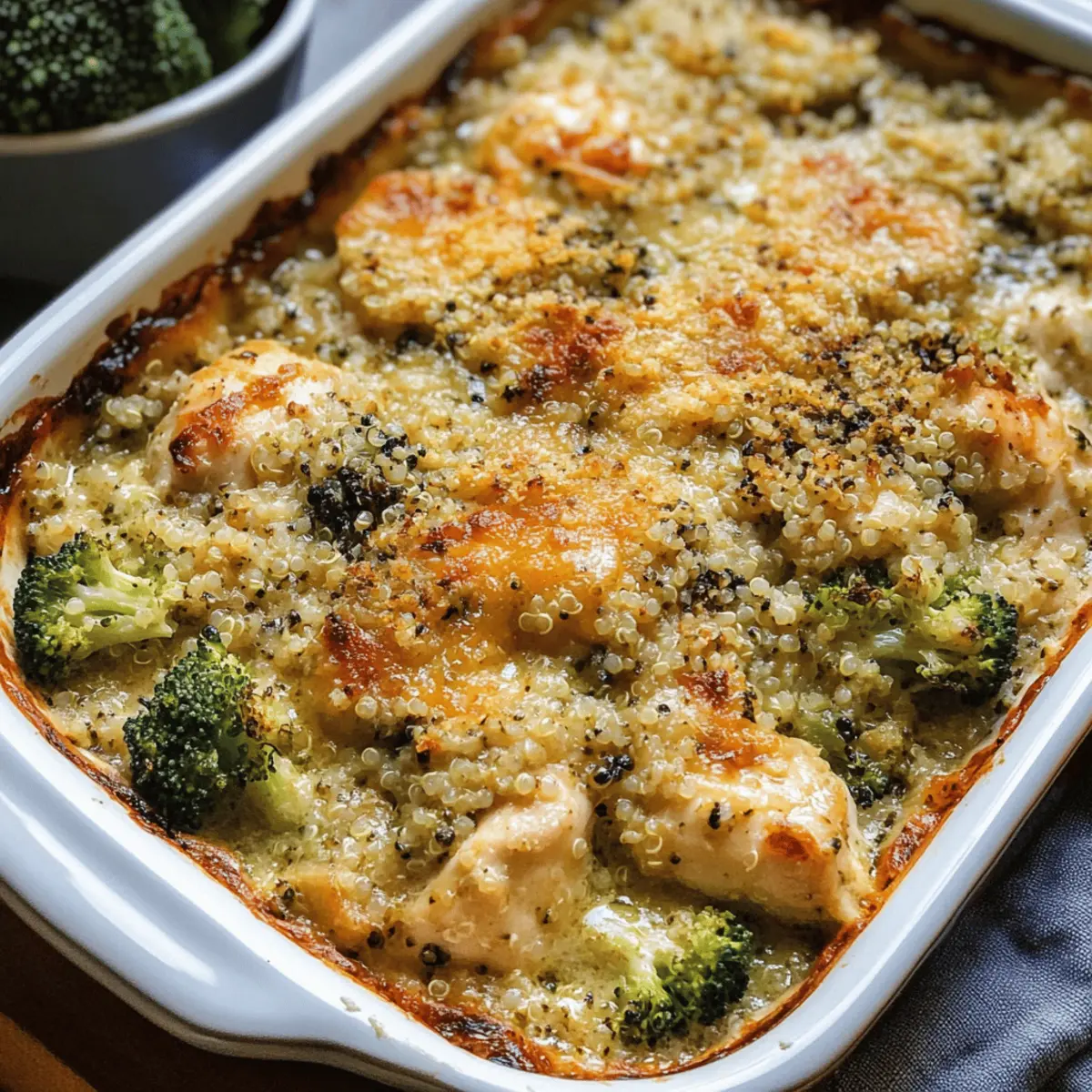 Jump to Recipe Print RecipeChaque fois que je cherche à préparer un repas réconfortant, je me tourne vers le Poulet fromager et quinoa au brocoli gratiné. Ce plat savoureux allie la douceur du poulet tendre, le croquant du brocoli et la légèreté du quinoa, le tout enveloppé dans une sauce crémeuse et délicieusement fromagée. Que vous soyez en quête d’une idée rapide pour un dîner en semaine ou que vous souhaitiez impressionner votre famille sans passer des heures en cuisine, cette recette saura séduire les palais. Dites adieu aux casseroles en conserve ; cette version saine vous permettra de vous régaler tout en vous assurant un apport élevé en protéines et des ingrédients sains. Qui est prêt à découvrir un nouveau favori familial ? Pourquoi adorer cette recette de casserole ? Simplicité extrême : La préparation est incroyablement facile avec seulement quelques étapes, même les cuisiniers débutants pourront s’y essayer sans crainte. Saveurs généreuses : Le mélange de poulet juteux, de brocoli frais et de quinoa offre une explosion de goût à chaque bouchée. Rapide et pratique : Parfait pour les dîners en semaine, ce plat se prépare en un rien de temps, idéal pour les soirées chargées. Polyvalent et personnalisable : Ajoutez vos légumes préférés ou remplacez le poulet par des lentilles pour des variations délicieuses. Attrait pour toute la famille : Les enfants et les adultes s’érigent en fans de ce repas réconfortant, loin des fast-foods habituels. Pour optimiser votre dîner, pourquoi ne pas l’accompagner d’une salade fraîche pour un repas bien équilibré ? Ingrédients pour le Poulet fromager et quinoa au brocoli gratiné • Apportez un goût authentique à votre plat avec ces ingrédients essentiels. Pour la Sauce au Fromage : Beurre – Une belle base de saveur ; peut être remplacé par de l’huile d’olive pour une option sans produits laitiers. Huile d’olive extra-vierge – Apporte de la richesse ; remplace le beurre pour une alternative plus légère. Oignon jaune ou échalotes hachés – Aromatiques de base pour la sauce ; les échalotes offrent une saveur plus douce. Gousses d’ail (hachées) – Indispensable pour un goût profond ; apporte une saveur essentielle à votre sauce. Farine tout usage – Épaississant pour la sauce au fromage ; la farine sans gluten peut être utilisée. Bouillon de poulet à faible teneur en sodium – Ajoute de l’humidité et de la saveur ; pour une version végétarienne, optez pour du bouillon de légumes. Lait entier – Base crémeuse pour la sauce au fromage ; des alternatives végétales peuvent également faire l’affaire. Assaisonnement pour volaille – Apporte de la profondeur herbacée ; substituez par des herbes fraîches ou un mélange d’herbes italiennes. Sel casher – Rehausse la saveur ; ajustez selon votre goût. Poivre noir – Pour une touche épicée ; utilisez du poivre blanc pour une saveur plus douce. Fromage cheddar fort râpé – Étoffe le goût principal ; substituez par du mozzarella pour une variante. Pour le Plat Principal : Quinoa sec (non cuit) – Base du gratin ; d’autres grains comme le riz brun fonctionneront également. Poitrines de poulet sans os et sans peau – Source de protéines ; le poulet rôti peut être utilisé pour un gain de temps. Fleurs de brocoli – Légumes nutritifs et colorés ; remplacez par du chou-fleur ou des épinards si désiré. N’oubliez pas que le Poulet fromager et quinoa au brocoli gratiné est une excellente façon d’introduire des ingrédients sains dans votre alimentation tout en maintenant un goût irrésistible. Instructions étape par étape pour Poulet fromager et quinoa au brocoli gratiné Step 1 : Préparer la Sauce au Fromage Dans une casserole moyenne, faites fondre 2 cuillères à soupe de beurre et ajoutez 1 cuillère à soupe d’huile d’olive à feu moyen. Incorporez 1 oignon jaune haché et 2 gousses d’ail émincées, et faites-les sauter pendant environ 3 minutes jusqu’à ce qu’ils soient tendres. Ajoutez 1/4 de tasse de farine et mélangez pendant 2 minutes, puis incorporez lentement 2 tasses de bouillon de poulet et 1 tasse de lait en fouettant jusqu’à ébullition et épaississement. Ajoutez 1 cuillère à café d’assaisonnement pour volaille et 2 tasses de fromage cheddar fort, en remuant jusqu’à ce que le fromage soit fondu. Step 2 : Mélanger les Ingrédients dans le Plat de Cuisson Coupez 2 poitrines de poulet sans os en morceaux de la taille d’une bouchée, puis assaisonnez-les avec du sel et du poivre. Dans un plat de cuisson graissé, ajoutez 1 tasse de quinoa cru, les morceaux de poulet et 2 tasses de fleurs de brocoli. Versez la sauce au fromage préparée sur le mélange et mélangez délicatement pour bien enrober chaque ingrédient du Poulet fromager et quinoa au brocoli gratiné. Step 3 : Cuire le Gratin au Four Préchauffez votre four à 190 °C (375 °F). Placez le plat de cuisson dans le four préchauffé et faites cuire pendant 45 minutes. Remuez le mélange à mi-cuisson pour assurer une cuisson uniforme et un fondant optimal. Vérifiez la cuisson du poulet et du quinoa ; si nécessaire, prolongez la cuisson de 5 à 10 minutes supplémentaires jusqu’à ce que le quinoa soit tendre et le poulet bien cuit. Step 4 : Ajouter les Touches Finales Une fois la cuisson terminée, sortez le gratin du four et remuez légèrement pour bien mélanger. Saupoudrez le reste du fromage cheddar sur le dessus, puis passez sous le gril pendant 3 à 5 minutes jusqu’à ce que le fromage soit doré et bouillonnant. Surveillez attentivement cette étape afin d’éviter que le fromage ne brûle. Step 5 : Servir et Savourer Laissez le Poulet fromager et quinoa au brocoli gratiné reposer pendant quelques minutes avant de servir. Cela permet aux saveurs de se mélanger davantage et rend le plat plus facile à portionner. Servez avec une salade fraîche pour un repas é
