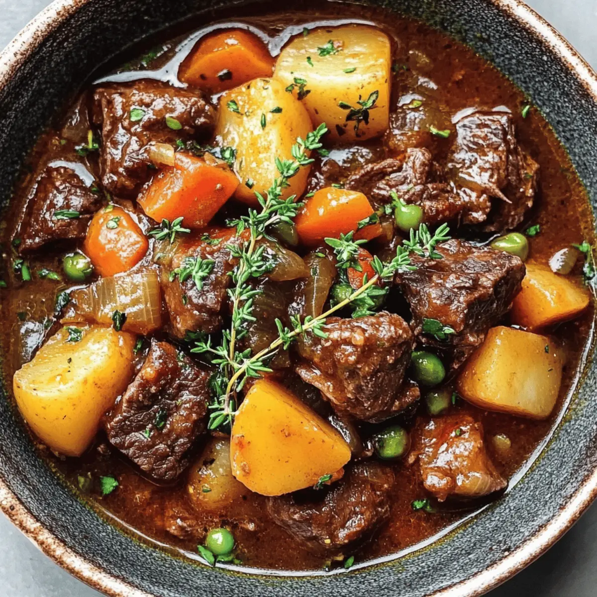 Jump to Recipe Print RecipeEn passant devant la cuisine, j’ai été enveloppé par l’arôme irrésistible d’un ragoût qui mijote doucement, me rappelant les froides soirées d’hiver passées en famille. Ce ragoût de bœuf Ina Garten est la quintessence du réconfort, avec ses morceaux de viande tendre et ses pommes de terre Yukon Gold, mijotés à la perfection. En plus d’être un plat copieux et savoureux, il offre également une option sans gluten, idéale pour tous ceux qui souhaitent régaler leurs proches sans tracas. Environ trois heures et quarante minutes suffisent pour créer ce chef-d’œuvre culinaire, parfait pour un dîner de semaine ou un moment spécial. Alors, pourquoi ne pas vous lancer dans cette aventure gourmande ? Vous ne le regretterez pas ! Pourquoi choisir ce ragoût réconfortant ? Réconfort instantané: Ce ragoût de bœuf Ina Garten est la définition même du confort culinaire, réchauffant votre cœur et votre foyer. Facilité d’exécution: Avec des étapes simples, même les cuisiniers débutants peuvent se lancer sans stress. Goût authentique: La combinaison de la viande tendre et des légumes frais crée une explosion de saveurs à chaque bouchée, idéale pour tout repas en famille. Polyvalent: Ajoutez vos légumes préférés ou optez pour une version sans gluten avec des substitutions simples. Vacances et soirées: Parfait pour les occasions spéciales, il ravira vos invités et fera des restes appréciés pour les jours suivants. Donc, si vous souhaitez impressionner ou simplement satisfaire une envie de réconfort, ce plat est fait pour vous. N’oubliez pas de l’accompagner d’une tartine de pain croustillant pour un repas inoubliable ! Ingrédients du Ragoût de Bœuf Ina Garten • Plongez dans l’univers chaleureux de la cuisine avec ce ragoût réconfortant ! Pour la viande 3 lbs de viande de bœuf chuck – Source principale de protéines, assurez-vous de retirer le gras excessif pour un ragoût plus léger. Sel kasher et poivre – Indispensables pour assaisonner ; ajustez selon votre goût. 3 cuil. à soupe d’huile d’olive – Pour faire dorer la viande, renforçant saveur et richesse. Pour la base aromatique 2 oignons jaunes, hachés – Apporte douceur et profondeur au plat. 4 gousses d’ail, émincées – Donne une belle note aromatique ; peut être remplacé par de la poudre d’ail si nécessaire. 1 tasse de carottes, hachées – Ajoute une douceur naturelle et de la texture. 1 tasse de céleri, haché – Apporte une fraîcheur croquante au ragoût. Pour la cuisson 2 cuil. à soupe de pâte de tomate – Intensifie la saveur avec sa richesse umami. 1 tasse de vin rouge sec – Ajoute une complexité; remplacez par du bouillon de bœuf pour une option sans alcool. 4 tasses de bouillon de bœuf – Fournit l’humidité et le corps au ragoût. 1 boîte (14,5 oz) de tomates en dés, égouttées – Introduit une acidité qui équilibre la richesse. Pour les épices 1 cuil. à café de thym séché – Apporte des arômes terreux ; utilisez du thym frais si possible. 2 feuilles de laurier – Ajoutent une couche de saveur aromatique pendant la cuisson. 1 cuil. à café de sauce Worcestershire – Renforce l’umami ; ajustez selon vos préférences. Pour varier Optionnel : 1½ lbs de pommes de terre, 1 tasse de champignons, 1 tasse de pois – Légumes supplémentaires pour une nutrition variée. Optionnel roux : 2 cuil. à soupe de beurre + 2 cuil. à soupe de farine – Pour épaissir le ragoût ; utilisez de la farine sans gluten pour une version sans gluten. Ce ragoût de bœuf Ina Garten réconfortant ne manquera pas de ravir vos papilles tout en créant une ambiance chaleureuse dans votre maison. Préparez-vous à déguster ce délice plein de saveurs ! Instructions pour le Ragoût de Bœuf Ina Garten Step 1 : Préchauffage du four Préchauffez votre four à 165°C (325°F). Cela préparera l’environnement idéal pour la cuisson lente de votre ragoût de bœuf Ina Garten, permettant aux saveurs de se développer lentement et harmonieusement au fur et à mesure que les ingrédients mijotent ensemble. Step 2 : Faire dorer le bœuf Dans une grande cocotte, faites chauffer 3 cuillères à soupe d’huile d’olive à température moyenne-élevée. Ajoutez 3 lbs de viande de bœuf chuck coupée en cubes, assaisonnez discrètement avec du sel kasher et du poivre, puis faites dorer le bœuf pendant environ 5 à 7 minutes, en le retournant jusqu’à ce qu’il soit bien coloré sur toutes ses faces. Step 3 : Faire suer les légumes Retirez le bœuf de la cocotte et réservez-le. Dans la même cocotte, ajoutez 2 oignons jaunes hachés et 4 gousses d’ail émincées. Faites revenir ces aromates pendant environ 3 à 4 minutes, jusqu’à ce qu’ils deviennent translucides et que leur parfum parfumé envahisse la cuisine. Step 4 : Ajouter les légumes Incorporez 1 tasse de carottes hachées et 1 tasse de céleri haché dans la cocotte. Faites cuire pendant environ 5 minutes, en remuant de temps en temps jusqu’à ce que les légumes commencent à ramollir et ajoutent leur douceur naturelle à la base du ragoût. Step 5 : Incorporer la pâte de tomate et le liquide Ajoutez 2 cuillères à soupe de pâte de tomate aux légumes et remuez bien pendant 1 minute pour libérer ses saveurs. Remettez ensuite le bœuf doré dans la cocotte, en ajoutant 1 tasse de vin rouge sec, 4 tasses de bouillon de bœuf, 1 boîte de tomates en dés, 1 cuil. à café de thym séché, 2 feuilles de laurier et 1 cuil. à café de sauce Worcestershire. Step 6 : Cuisson au four Portez le mélange à ébullition sur la cuisinière, puis couvrez la cocotte. Transférez le tout au four préchauffé et laissez cuire pendant 2,5 à 3 heures. Vérifiez la cuisson lorsque la viande est tendre et se défait facilement à la fourchette, garantissant que le ragoût de bœuf Ina Garten a bien développé toutes ses saveurs. Step 7 : Préparation du rou