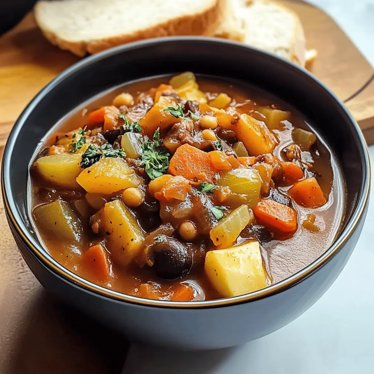 Jump to Recipe Print RecipeEn plein milieu d’une de ces journées pluvieuses où l’on cherche un petit réconfort, je me suis retrouvé à concocter un ragoût végétarien savoureux. Ce plat chaleureux, à la fois nourrissant et simple à préparer, s’avère être un véritable plaisir pour tous, même pour les amateurs de viande. En utilisant ce que j’ai dans le réfrigérateur, ce ragoût permet une créativité sans limites grâce à sa personnalisation. Deux atouts majeurs de cette recette rapide sont qu’elle est non seulement conviviale pour la préparation de repas, mais également un bonheur dans le répertoire des recettes réconfortantes. Alors, êtes-vous prêt à transformer quelques légumes en un festin réconfortant qui embaumera votre cuisine? Pourquoi ce ragoût est-il si spécial ? Richesse de saveurs : Chaque bouchée de ce ragoût végétarien vous envoûte avec une symphonie de goûts, où les herbes fraîches rencontrent les légumes tendres. Personnalisation aisée : Adaptez-le facilement à vos préférences. Changer les légumes selon ce que vous avez sous la main n’a jamais été aussi simple. Préparation rapide : En moins de 30 minutes, ce plat réconfortant est prêt à être savouré, idéal pour vos soirées bien remplies. Nourrissant et satisfaisant : Avec un contenu riche en fibres et en vitamines, vous pouvez vous faire plaisir sans culpabilité. Pour encore plus de variété, envisagez de l’accompagner de pain croustillant ou d’une salade fraîche. Apprécié de tous : Même les carnivores seront impressionnés par la profondeur des saveurs, faisant de ce ragoût un plat parfait pour toute occasion. Ingrédients pour le Ragoût Végétarien • Voici tout ce dont vous avez besoin pour préparer ce délicieux ragoût végétarien. Pour la Base Huile d’Olive – Ajoute de la richesse et facilite la cuisson des légumes. Oignon – Fait office de base aromatique pour enrichir la saveur. Céleri – Offre une profondeur aromatique et une bonne texture. Carottes – Apporte une douceur agréable et une belle couleur. Champignons Châtaigne – Ingrédient clé pour une touche umami; vous pouvez les remplacer par des champignons blancs ou crémini. Ail – Rehausse les saveurs avec sa fragrance incontournable. Romarin & Thym – Herbes fraîches qui ajoutent un parfum délicieux et complexe. Pour la Sauce Purée de Tomate – Confère de la profondeur et du corps au ragoût. Sauce Soja – Ajoute une note salée savoureuse. Sauce Worcestershire – Facultative, pour un umami supplémentaire; utilisez une alternative végétalienne si souhaité. Farine – Épaissit le ragoût; veillez à bien la cuire pour éviter une texture pâteuse. Vin Rouge – Parfait pour déglacer, il rehausse le goût global. Pour les Légumes et le Bouillon Panais & Rutabaga – Apportent une texture agréable et une douceur supplémentaire. Bouillon de Légumes – Essentiel pour donner l’humidité nécessaire. Feuilles de Laurier – Ajoutent une fragrance aromatique pendant la cuisson. Sel & Poivre Noir – Indispensables pour bien assaisonner. Instructions pour le Ragoût Végétarien Réconfortant Step 1 : Sauter la Base Chauffez un grand faitout à feu doux et ajoutez de l’huile d’olive. Incorporez l’oignon émincé et le céleri avec une pincée de sel. Faites cuire pendant 10 minutes, en remuant de temps en temps, jusqu’à ce que les légumes soient tendres et translucides, formant ainsi une base aromatique pour votre ragoût végétarien. Step 2 : Ajouter les Carottes Ajoutez maintenant les carottes coupées en dés au mélange de légumes. Continuez à faire cuire pendant 10 autres minutes à feu moyen-doux. Vous verrez les carottes devenir légèrement dorées et sucrées, contribuant ainsi à la richesse du ragoût. Step 3 : Cuire les Champignons Augmentez la chaleur à feu moyen et incorporez les champignons. Laissez cuire pendant environ 5 minutes, jusqu’à ce qu’ils soient bien dorés et qu’ils aient libéré leur jus. Cette étape est cruciale pour développer la profondeur de saveur dans votre ragoût végétarien. Step 4 : Renforcer la Saveur Ajoutez l’ail haché, le romarin et le thym dans la marmite. Faites cuire pendant encore 1 minute, en remuant constamment pour permettre aux arômes de se dégager. À ce stade, votre cuisine sera remplie d’une délicieuse odeur qui ouvrirait l’appétit de n’importe qui. Step 5 : Combiner les Ingrédients Incorporez la purée de tomate, la sauce soja et, si vous le souhaitez, la sauce Worcestershire. Laissez cuire pendant 1 minute pour bien amalgamer les saveurs, tout en remuant. Cela formera une riche base de saveur pour le ragoût. Step 6 : Épaissir le Mélange Ajoutez la farine à la préparation et mélangez jusqu’à ce qu’elle soit bien absorbée par les légumes. Ensuite, versez le vin rouge et remuez, créant ainsi une sauce épaisse. Cela donnera une texture veloutée au ragoût végétarien. Step 7 : Ajouter les Légumes et le Bouillon Intégrez les panais et rutabagas coupés en morceaux, puis ajoutez le bouillon de légumes. Assaisonnez avec du sel et du poivre selon votre goût et incorporez les feuilles de laurier. Remuez bien pour combiner tous les ingrédients. Step 8 : Mijoter Réduisez la chaleur à feu doux, couvrez partiellement la casserole et laissez mijoter pendant 45 à 50 minutes. Remuez de temps en temps pour éviter que le ragoût ne colle au fond. La cuisson lente permettra aux saveurs de se mêler et aux légumes de devenir tendres. Step 9 : Finition Avant de servir, retirez les feuilles de laurier de votre ragoût végétarien. Vérifiez l’assaisonnement et ajustez si nécessaire. Votre ragoût est maintenant prêt à être dégusté, rempli de saveurs réconfortantes et de bienfaits nutritifs. Préparation Anticipée du Ragoût Végétarien Le ragoût végétarien est idéal pour les cuisiniers occupés qui souhaitent gagner du temps en semaine. Vou