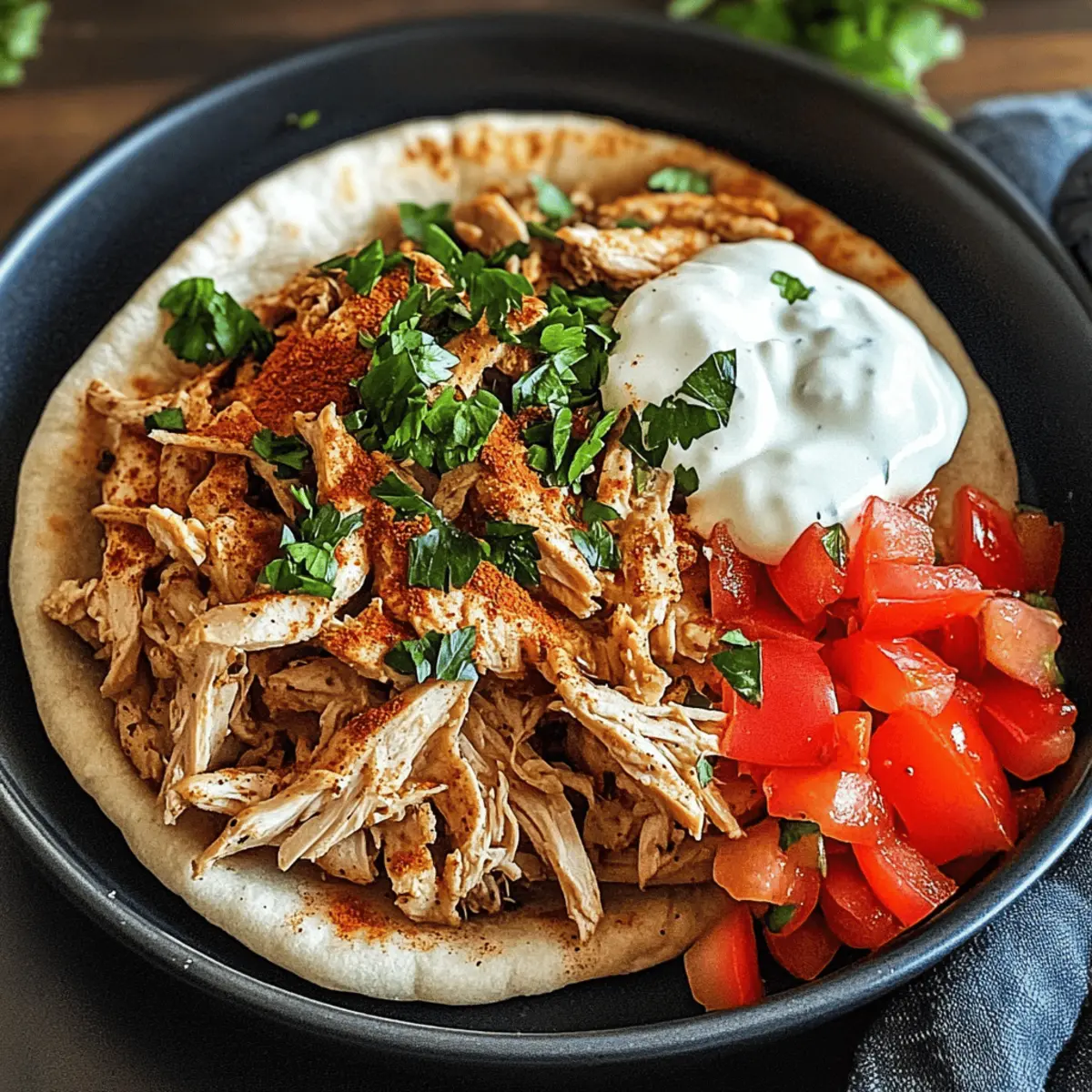 Jump to Recipe Print RecipeEn rentrant chez moi après une longue journée, l’odeur épicée du shawarma de poulet mijotant dans ma cuisine me transporte immédiatement vers des contrées méditerranéennes. Avec ses morceaux de poulet tendre et savoureux, ce plat réconfortant est non seulement un régal pour les papilles, mais aussi un véritable atout pour les dîners tranquilles. La préparation se fait sans effort grâce à la cuisson lente, et vous pouvez personnaliser votre shawarma avec vos garnitures préférées, que ce soit des légumes frais ou un filet de sauce au yaourt. Non seulement ce shawarma de poulet est un vrai plaisir pour les sens, mais il promet aussi une découverte savoureuse à chaque bouchée. Prêt à régaler vos amis et votre famille avec ce délice réconfortant? Pourquoi adorer ce shawarma de poulet? Simplicité : Grâce à la cuisson lente, ce plat se prépare facilement sans stress. Il suffit de mélanger les ingrédients et de laisser votre slow cooker faire le reste. Saveurs riches : Les épices comme le cumin et la cannelle apportent des saveurs méditerranéennes authentiques à chaque bouchée. Personnalisation : Variez les garnitures ! Ajoutez des légumes frais, de la mozzarella fondante ou même un peu de feta pour une touche crémeuse. Convivialité : Parfait pour les soirées entre amis, ce plat saura plaire à tous les gourmets. Vous pouvez également le servir avec un saladier de tabbouleh pour un repas encore plus complet. Gain de temps : Préparez ce shawarma en un rien de temps, et savourez les moments passés avec vos proches pendant que le poulet mijote. Pour découvrir d’autres recettes aussi réconfortantes, n’hésitez pas à consulter nos idées de plats faciles ! Ingrédients pour le shawarma de poulet • Pour vous aider à vous immerger dans les délicieux arômes de ce shawarma de poulet, voici les ingrédients nécessaires : Pour le poulet Cuisses de poulet désossées et sans peau – Garantissent tendreté et saveur; utilisez des poitrines si vous préférez, mais elles risquent de se dessécher. Ail – Ajoute une profondeur savoureuse; privilégiez l’ail frais pour un goût optimal. Cumin – Offre des notes chaudes et terreuses; incontournable pour le goût traditionnel du shawarma. Paprika – Apporte une douceur légère et de la couleur; remplacez par du paprika fumé pour une touche différente. Curcuma – Apporte une belle couleur et une légère amertume; optionnel mais augmente la profondeur des saveurs. Coriandre – Donne des notes citronnées; la coriandre fraîche ajoute de la légèreté. Cannelle – Ajoute de la chaleur et une touche sucrée; essentielle pour un goût authentique. Poivre de Cayenne – Produit du piquant; ajustez selon votre niveau de tolérance à la chaleur. Sel et Poivre noir – Essentiels pour l’assaisonnement; à adapter à votre goût. Pour la marinade Huile d’olive – Ajoute de la richesse et de l’humidité; peut être remplacée par de l’huile de canola ou de coco. Yaourt nature – Attendrit le poulet et apporte de la crémeux; le yaourt grec ou les alternatives sans produits laitiers conviennent aussi. Jus de citron – Éveille les saveurs et équilibre le plat; le vinaigre peut remplacer, mais le goût sera différent. Vinaigre de cidre de pomme – Renforce l’acidité; optionnel si vous utilisez déjà du jus de citron. Profitez bientôt de cette expérience culinaire méditerranéenne dans le confort de votre maison ! Instructions pour le shawarma de poulet Step 1: Préparer les épices Dans un grand bol, mélangez l’ail émincé, le cumin, le paprika, le curcuma, la coriandre, la cannelle, le poivre de cayenne, le sel et le poivre jusqu’à obtenir un mélange homogène. Cette base d’épices est essentielle pour aromatiser votre shawarma de poulet. Prenez un moment pour admirer la couleur vibrante des épices. Step 2: Mélanger la marinade Ajoutez l’huile d’olive, le yaourt nature, le vinaigre de cidre de pomme et le jus de citron au mélange d’épices. Remuez le tout vigoureusement jusqu’à ce que la marinade soit bien combinée et crémeuse. La marinade parfumée va imprégner le poulet et le rendre tendre et savoureux. Step 3: Enrober le poulet Prenez les cuisses de poulet désossées et sans peau et enrobez-les soigneusement de la marinade. Assurez-vous que chaque morceau est bien couvert pour maximiser l’absorption des saveurs. Placez le poulet mariné directement dans la cuve du slow cooker, en veillant à les espacer uniformément. Step 4: Cuire lentement Couvrez le slow cooker et réglez-le sur la température basse. Laissez cuire le shawarma de poulet pendant 6 à 8 heures, ou sur la température élevée pendant 3 à 4 heures. Vérifiez que le poulet est bien cuit et tendre en enfonçant une fourchette, la viande doit se défaire facilement. Step 5: Effilocher le poulet Une fois la cuisson terminée, utilisez deux fourchettes pour effilocher le poulet directement dans le slow cooker. Mélangez le poulet avec les jus restés dans la cuve pour qu’il soit encore plus savoureux et juteux. C’est le moment idéal pour goûter et ajuster l’assaisonnement si nécessaire. Step 6: Servir le shawarma Servez le poulet effiloché dans des pita chauds, en ajoutant des légumes frais, comme des tomates et des concombres, selon vos préférences. Pour une touche gourmande, ajoutez du fromage feta ou des oignons marinés, puis parsemez le tout de coriandre fraîche. Votre shawarma de poulet est désormais prêt à être dégusté ! Conseils de conservation pour le shawarma de poulet Réfrigérateur: Conservez les restes de shawarma de poulet dans un contenant hermétique au réfrigérateur pendant 3 jours maximum. Cela vous permettra de savourer les saveurs sans compromettre la qualité. Congélateur: Pour une conservation à long terme, le shawarma de poulet se congèle jusqu’à 2 mois. Divisez-le en portions individuelles pour des repas rap